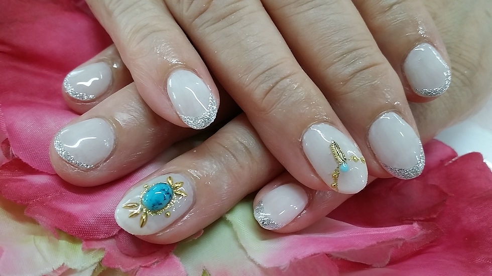 ターコイズ&フェザーパーツ☆2016年9月11日読了時間: 1分いつもお友達とご来店ありがとうございます☆今回はアイボリーカラーに大きめターコイズとフェザーパーツをON♪また次回もお二人でお待ちしております(^○^)